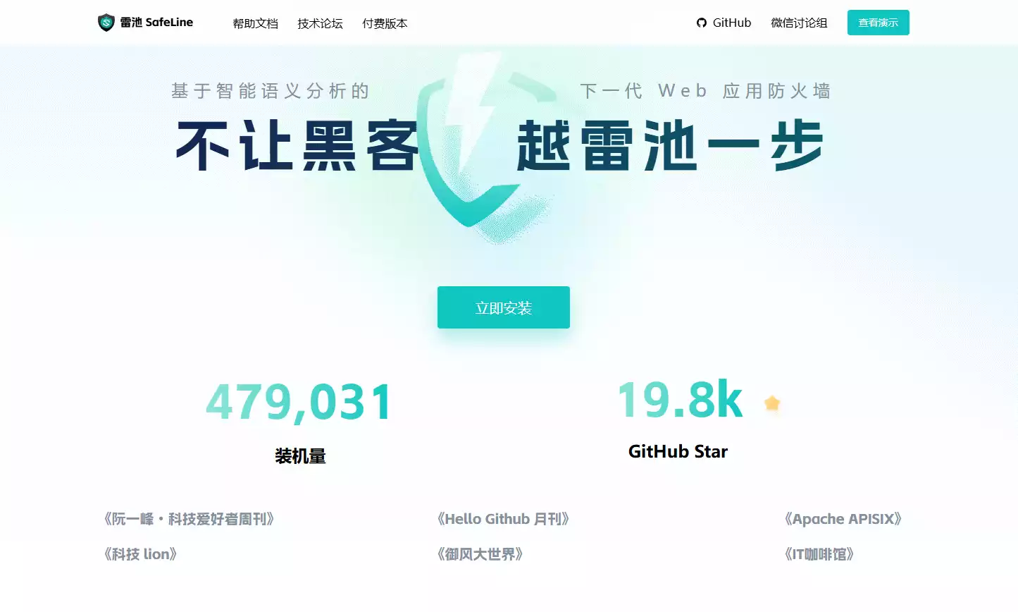 SafeLine,中文名 "雷池",是一款简单好用, 效果突出的 Web 应用防火墙(WAF),可以保护 Web 服务不受黑客攻击。