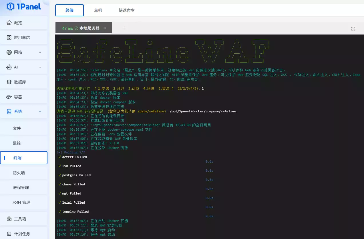 1panel安装雷池WAF
