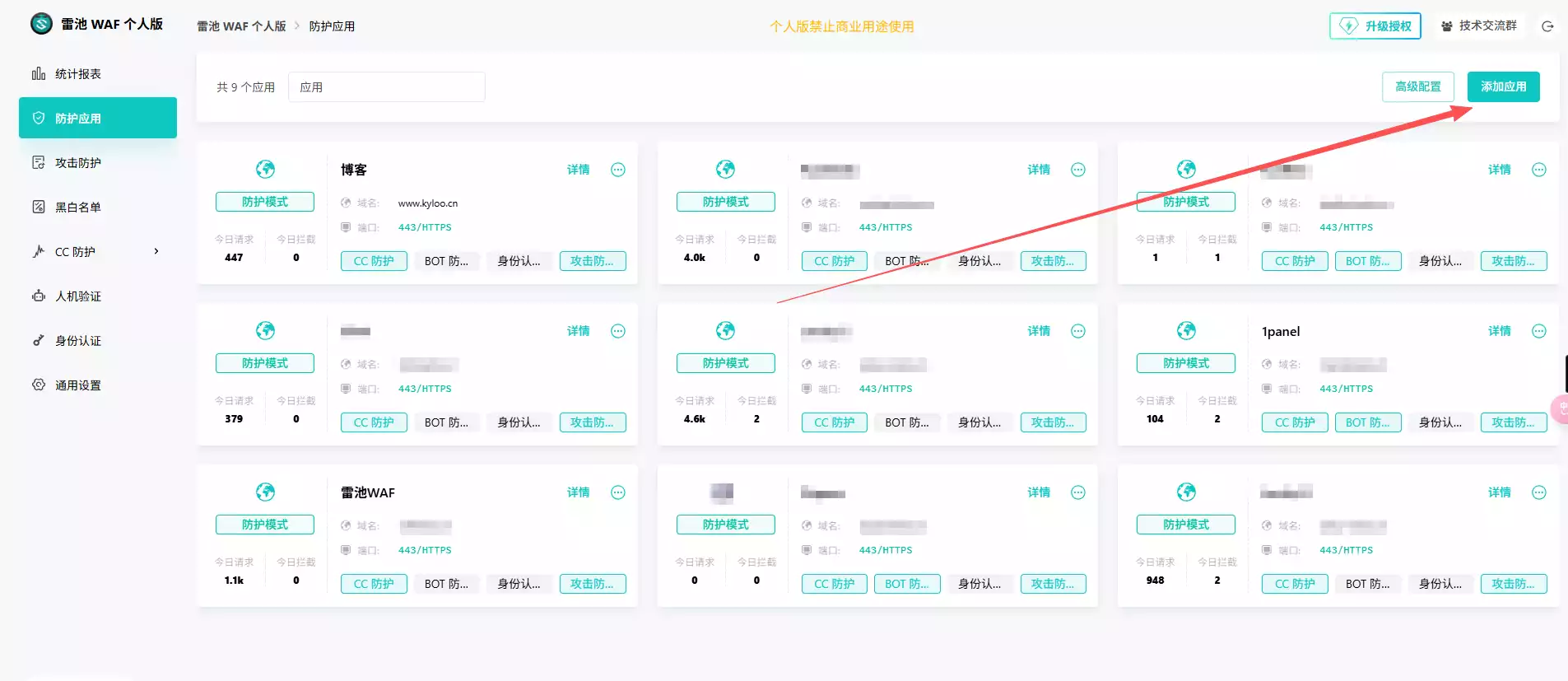 雷池作用主要是给自己发布到公网的服务加上防护,但对于一些静态页面和不怎么重要的服务来说,不是必须的,且雷池社区版只支持10个免费站点,一般来说足够个人使用了。